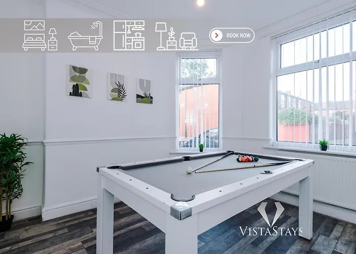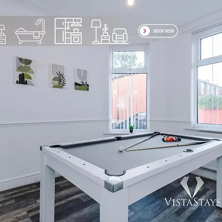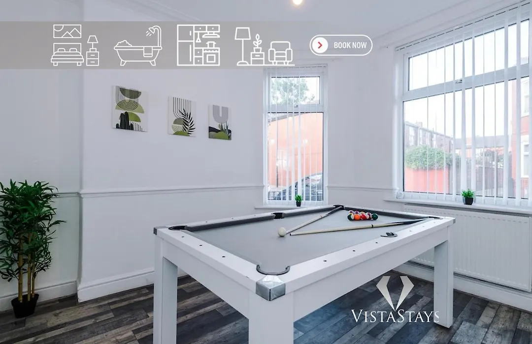 3Br, Pool Table, Dart Board By Vista Stays Short Lets Manchester villa includes a kitchen with an oven. Guests can enjoy Chinese dishes in Win Wah, located 650 metres away. The holiday home offers access to Deansgate railway station, about 6 km away. A patio is available on site, and table tennis, billiards, and darts can be enjoyed within proximity of this Manchester accommodation.